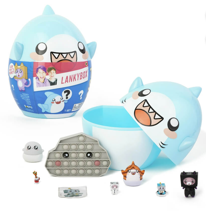 Unleash the ultimate LankyBox experience with the GIANT Thicc Shark Mystery Egg! Explore 8 exclusive toys and accessories guaranteed to bring the LankyBox world to life. From mystery figures to micro figures and even a pop-it, get ready for endless fun both on and off screen!