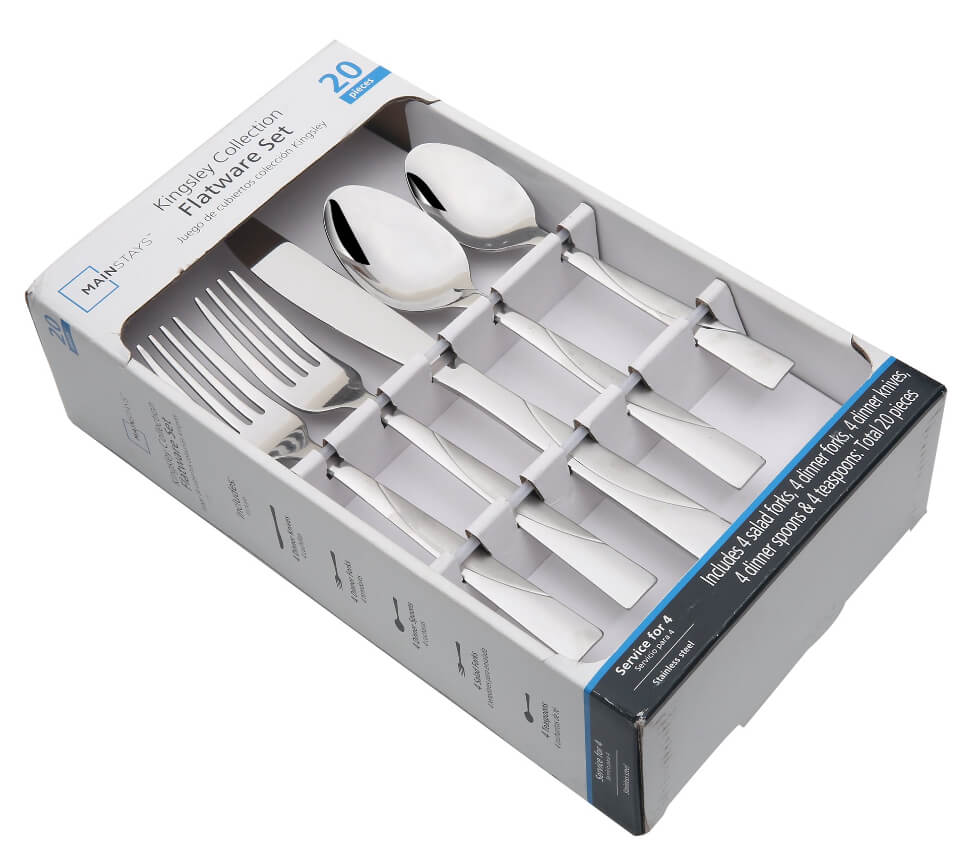 Mainstays Kingsley 20-Piece Flatware Set – Polished & Matte Two-Tone Stainless Steel for Everyday Dining